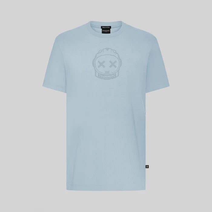 Camiseta Eyre de hombre en algodón Pima Peruano que es reconocido por ser un material suave y fresco. Está confeccionada en una silueta regular, al frente presenta el arte del astronauta phillip estampado en alta densidad en líneas horizontales en los colores insignia de la colección.