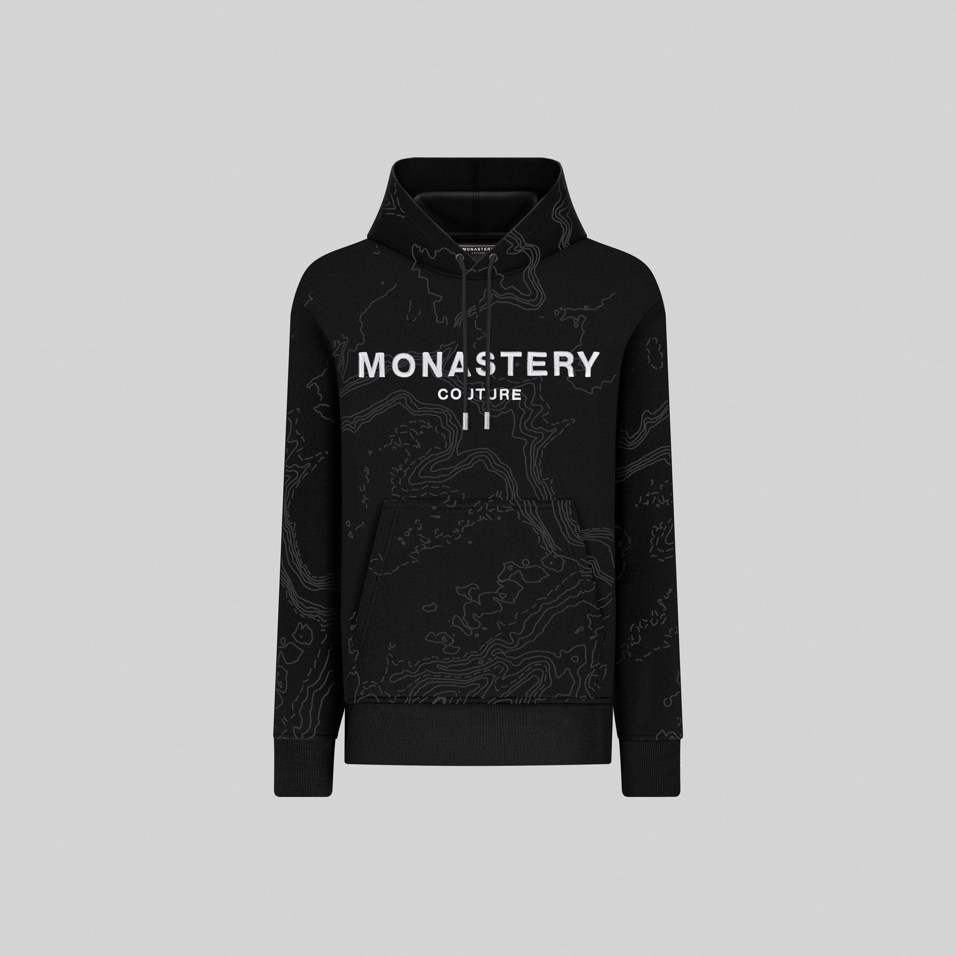 Nuestras Jerjes con capucha, con bolsillo canguro, presentan el texto "Monastery Couture" bordado en el centro sobre un elegante diseño topográfico. En la parte interior del capote podrás apreciar un color de contraste que le da un toque distintivo. La base textil está compuesta 100% de algodón peruano, lo que garantiza una calidad excepcional. Además, esta sudadera con capucha tiene una silueta regular, diseñada para realzar la figura masculina.
