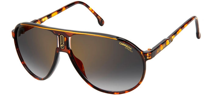 Echa un vistazo a los anteojos de sol ultra chic Carrera CHAMPION65/N en Marrón Habana . Hechos de Polyamide , los lentes de sol tienen cristales Gradient Grey Mirror y una protección total UV.