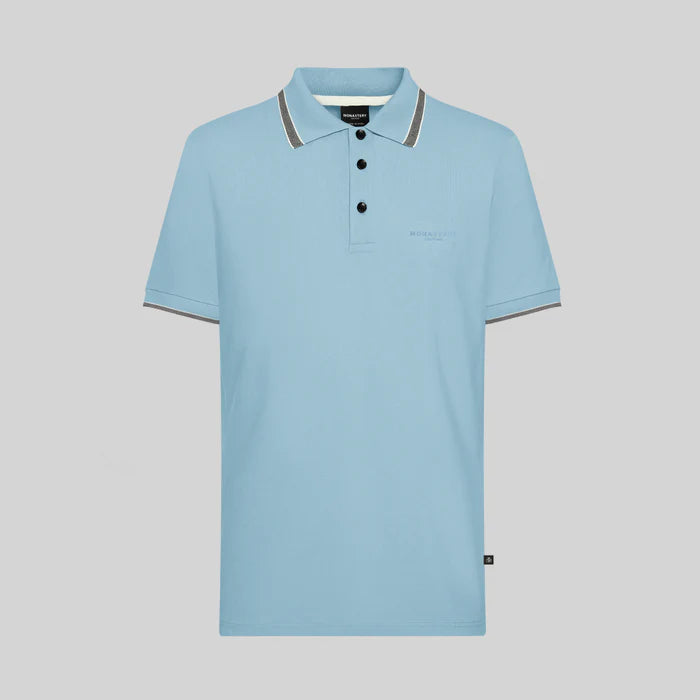 Camiseta tipo polo para hombre, confeccionada en algodón piqué simple Lycrado. El logo TSM se encuentra bordado en el punto corazón en un tono que se funde con la base. El cuello, los botones y los puños de las mangas comparten el mismo tono que la base textil, lo que añade dinamismo al diseño. La polo Zaid es el complemento perfecto para destacar y dar vida a tu rutina diaria.